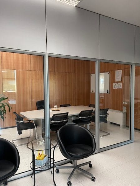 La porzione, che si presenta in ottime condizioni e suddivisa con moderne pareti mobili ed attrezzate, si compone di un ingresso, 4 camere ad uso ufficio, di cui 3 direzionali e la quarta più ampia dotata di 4/6 postazioni di lavoro, oltre ad una comoda sala riunioni, una comoda zona ristoro e doppi servizi igienici.